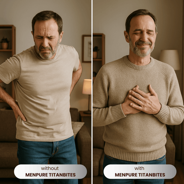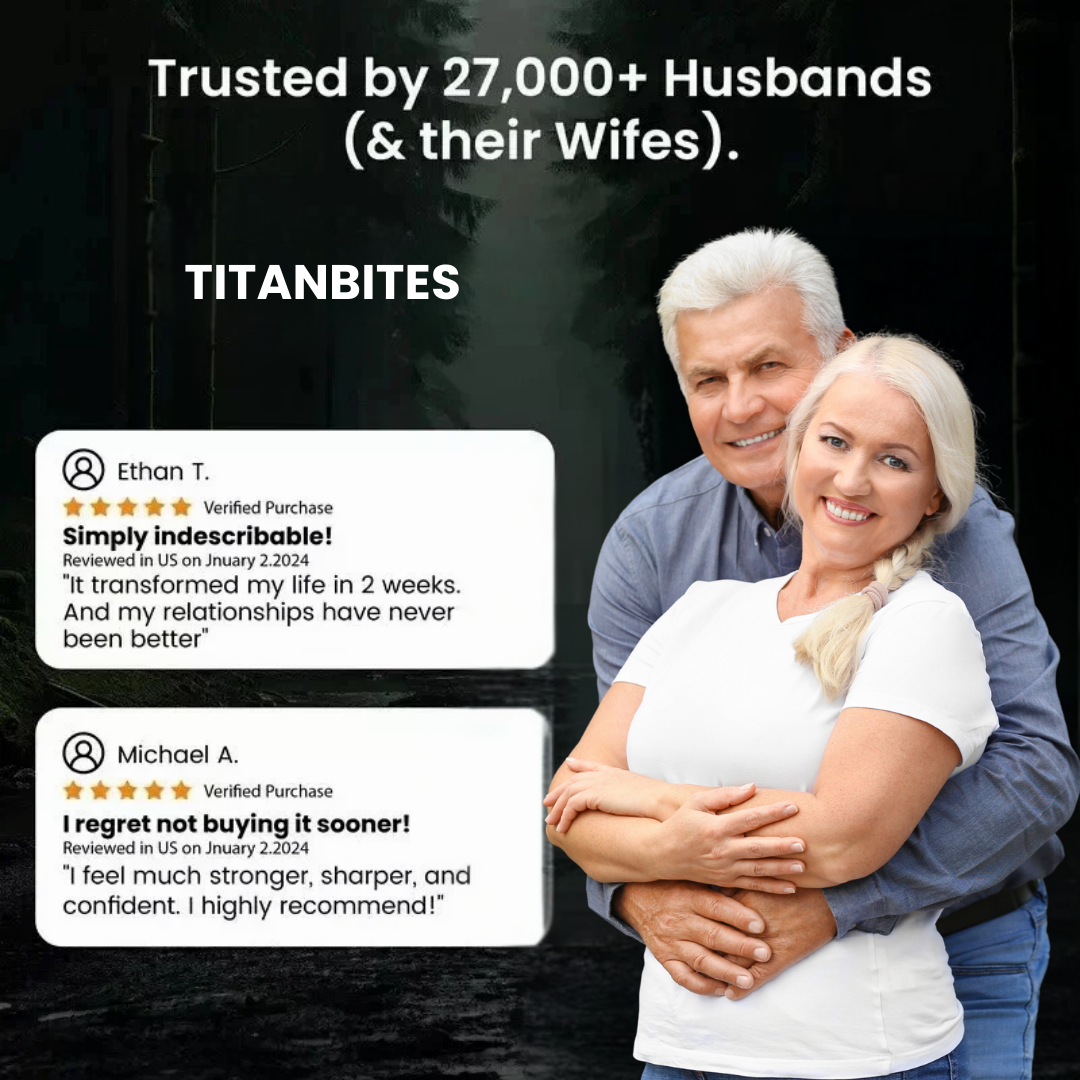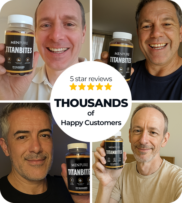 One bottle of TITANBITES provides a full 30-day supply of our premium men’s performance gummies. Powered by the clinically studied duo Pycnogenol® + L-Arginine, TITANBITES are formulated to naturally support healthy blood flow, stamina, energy, and confidence. With a discreet, great-tasting gummy format, it’s an easy, natural way to help restore performance and vitality without the hassle of pills.